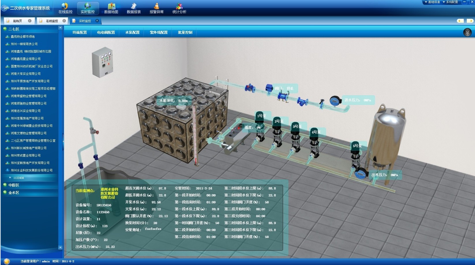 供水遠(yuǎn)程監(jiān)控系統(tǒng)軟件采用B/S設(shè)計(jì)模式,管理人員可通過網(wǎng)頁(yè)登陸進(jìn)入該系統(tǒng)進(jìn)行權(quán)限內(nèi)的業(yè)務(wù)操作,調(diào)取實(shí)時(shí)生產(chǎn)數(shù)據(jù),遠(yuǎn)程設(shè)置閥門開關(guān)停狀態(tài),開停泵時(shí)間段缺水停泵等參數(shù)。為科學(xué)決策提供重要依據(jù)。軟件結(jié)構(gòu)上充分保證了系統(tǒng)的安全性,同時(shí)又為供水管理工作提供了極大的便利性。