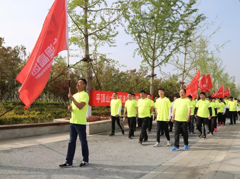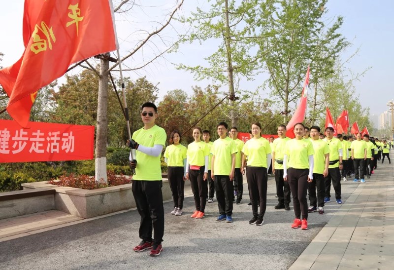 4月13日上午,在鄭東新區北龍湖畔,紅旗飄揚,口號嘹亮,河南盛潤控股集團2019環龍湖健步走活動正如火如荼。由300余名職工組成的九大方陣,著裝靚麗,步調一致,昂首挺胸,神采奕奕,闊步前行在康莊大道上。